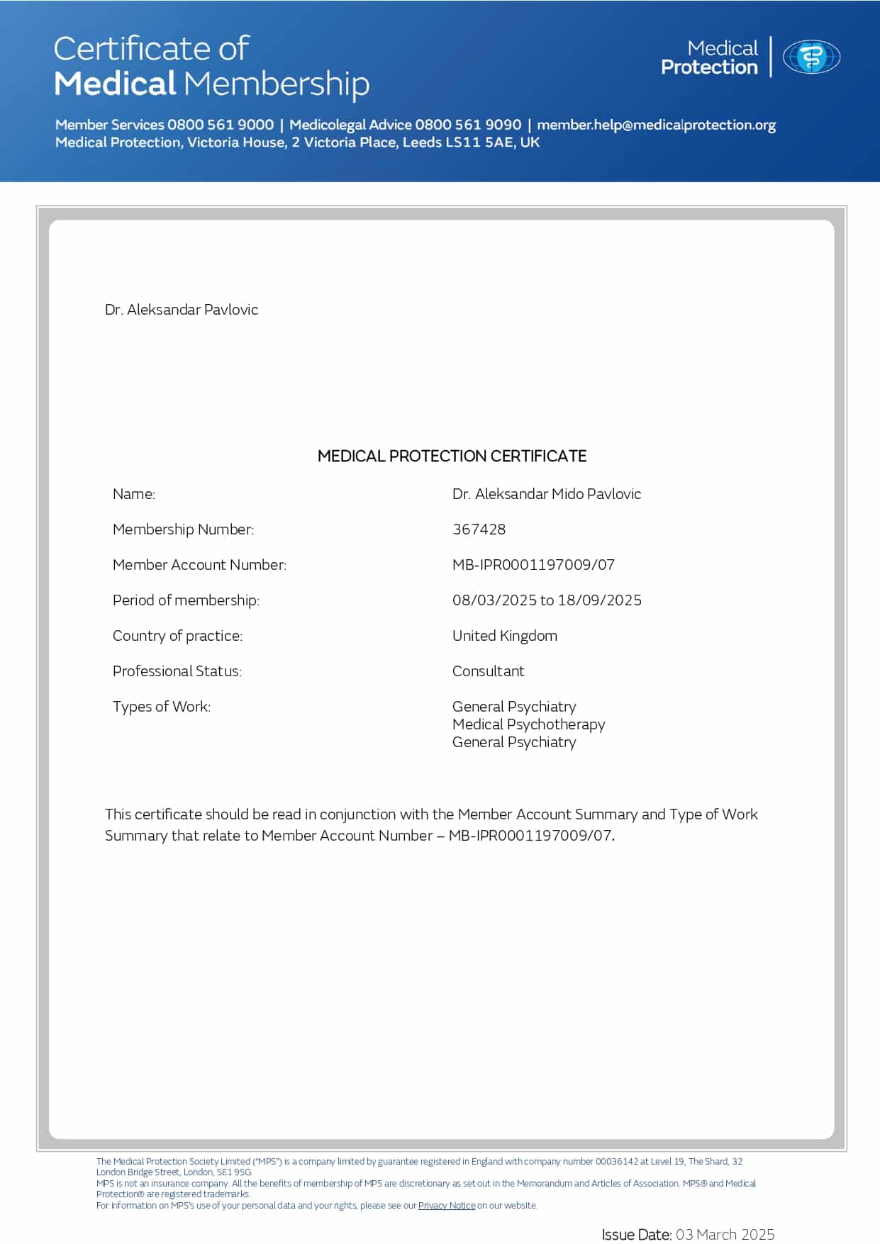 With a career that encompasses clinical practice, education, and advocacy, Dr. Pavlovic continues to make significant contributions to mental health care, both within the NHS and in private practice. His integrative approach and commitment to patient-centred care make him a respected figure in the field of psychiatry.