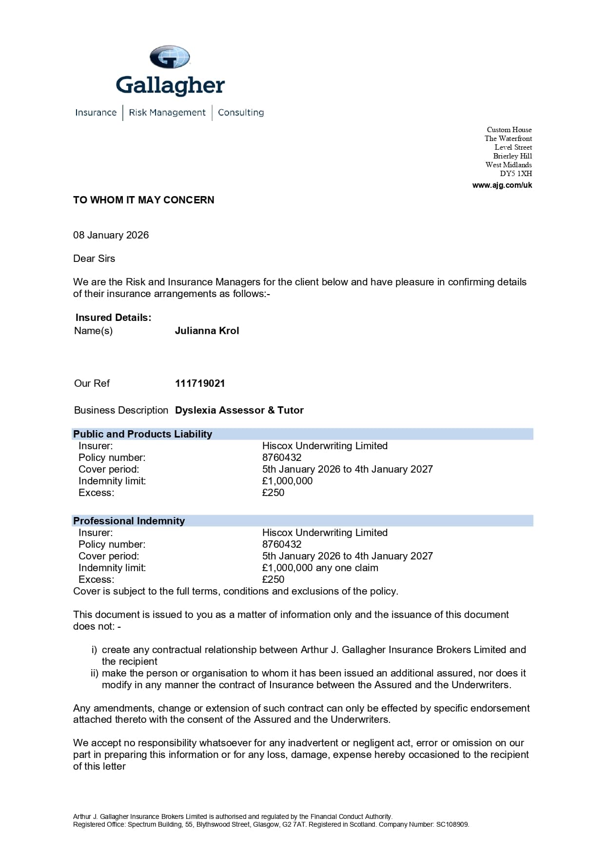 Julianna Krol is a Specialist Teacher and Assessor for Specific Learning Difficulties (SpLD), with advanced expertise in dyslexia, developmental disorders, and inclusive learning. She is currently completing her MA in Specific Learning Difficulties (Dyslexia) at University College London (UCL), a Level 7 AMBDA-accredited programme recognised by the British Dyslexia Association (BDA). Through this rigorous training, she has developed specialist skills in literacy development, diagnostic assessment, and targeted intervention for learners with dyslexia and related learning differences. She also holds the AMBDA and APC accreditations, qualifying her to provide full diagnostic assessments and Access Arrangements assessments in the UK.
