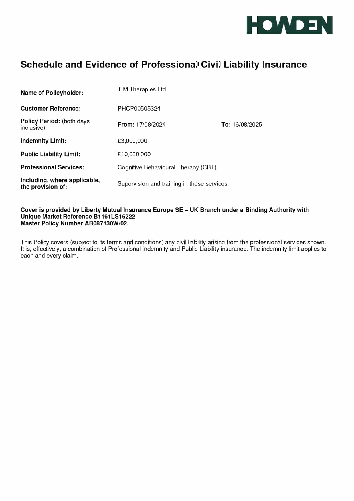 View CV View Professional InsuranceTara McCloskey is a Cognitive Behavioural Therapist who has been accredited by the British Association for Behavioural and Cognitive Psychotherapies (BABCP). She mostly uses Cognitive Behavioural Therapy (CBT) but she also uses other approaches such as Compassion Focused Therapy (CFT) and Acceptance Commitment Therapy (ACT).